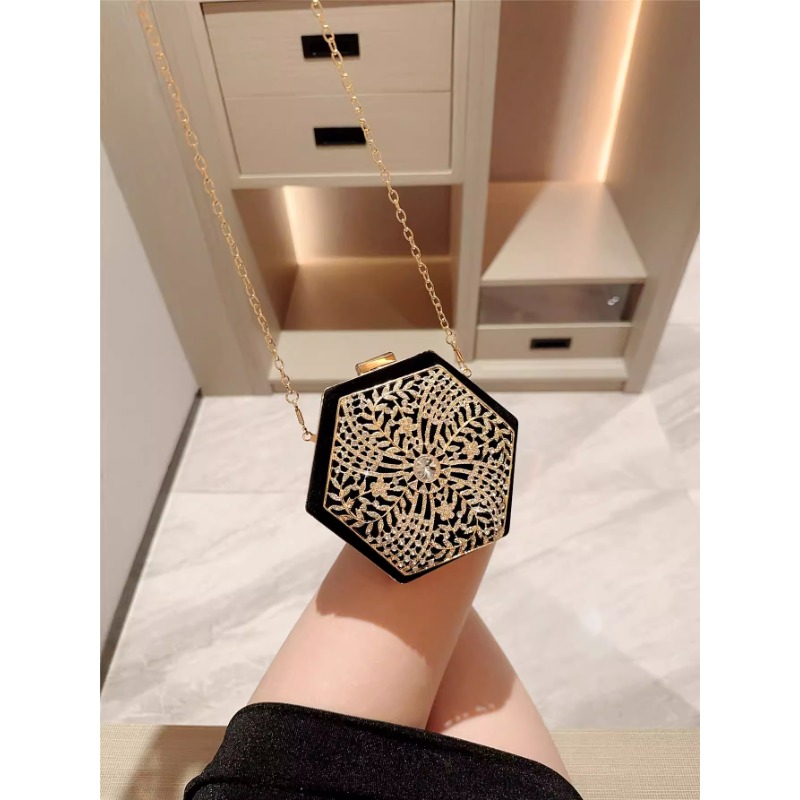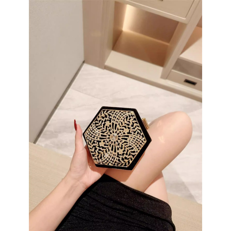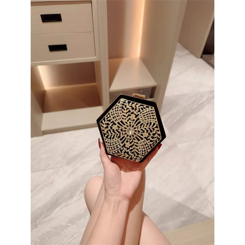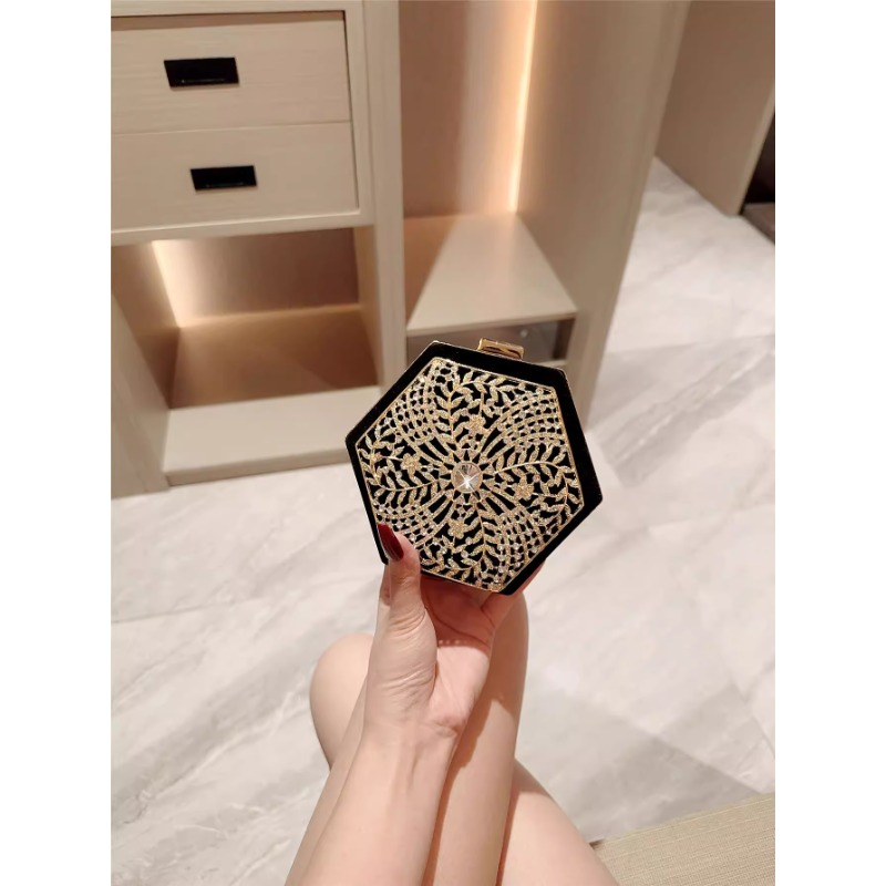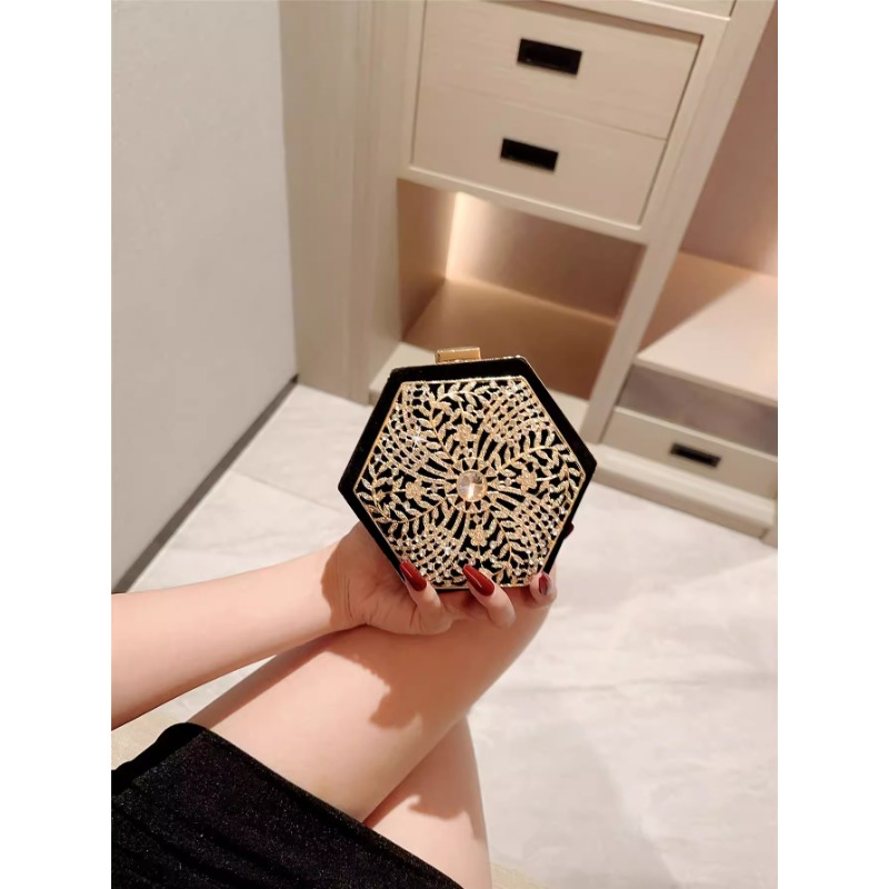 Home > EB1765 Hexagon leaf pattern 2025 luxury for women's Crystal Bag Party gold rhinestone clutch evening bags