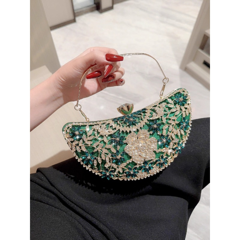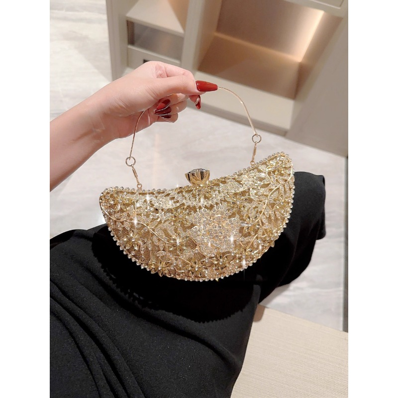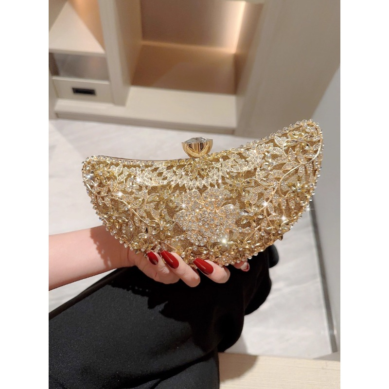 Home > Eb1767 Moon Shape Gold 2025 Ladies Wedding Fancy Clutch Bag for Women Rhinestone Frame Glitter Diamond Luxury Evening Bags