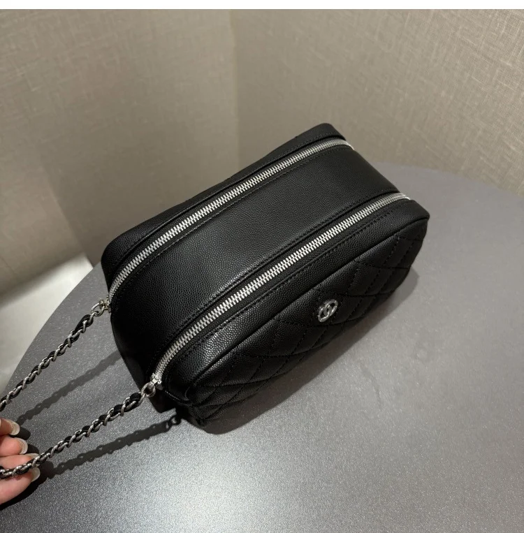 EMG7542 luxury genuine leather cosmetic bag case travel make up black for women zippered Glitter Professional Storage custom caviar bags