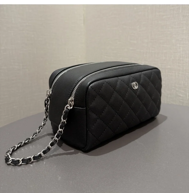 Home > EMG7542 luxury genuine leather cosmetic bag case travel make up black for women zippered Glitter Professional Storage custom caviar bags