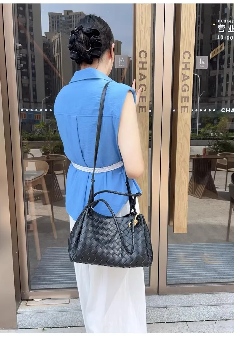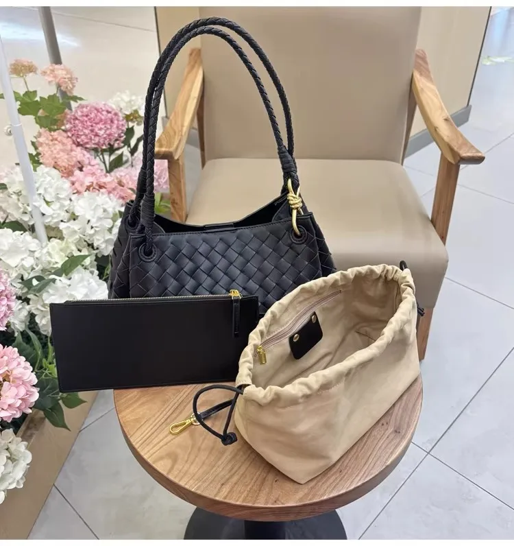 Home > EMG7579 Fluffy Black Plain leather women's for women hand bags Large Handbag woven Plush Fur Velvet Tote custom bucket bag